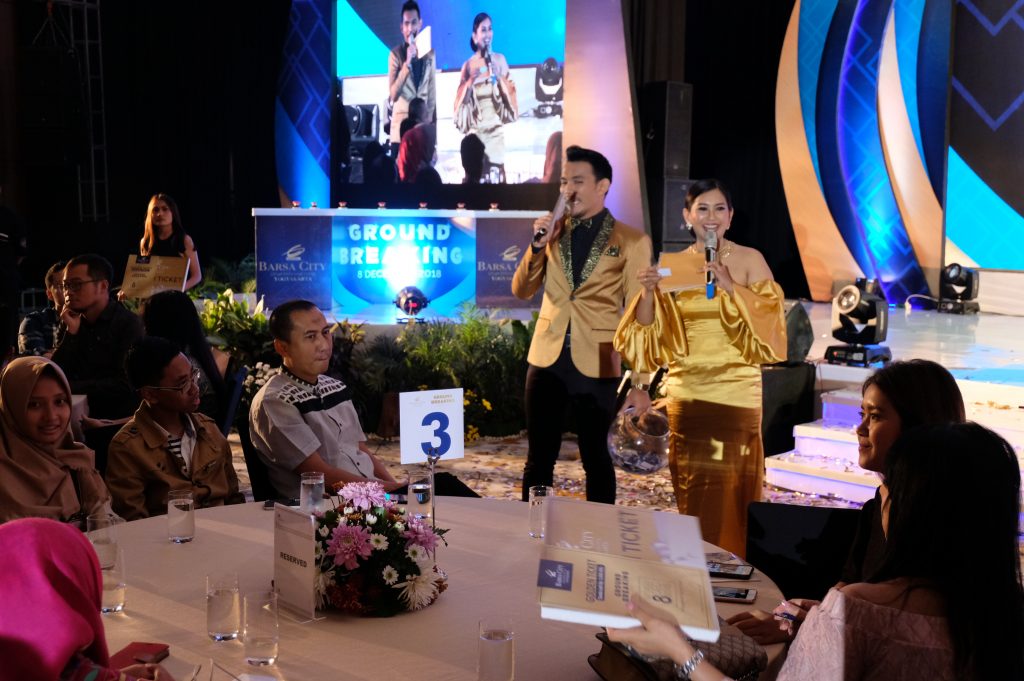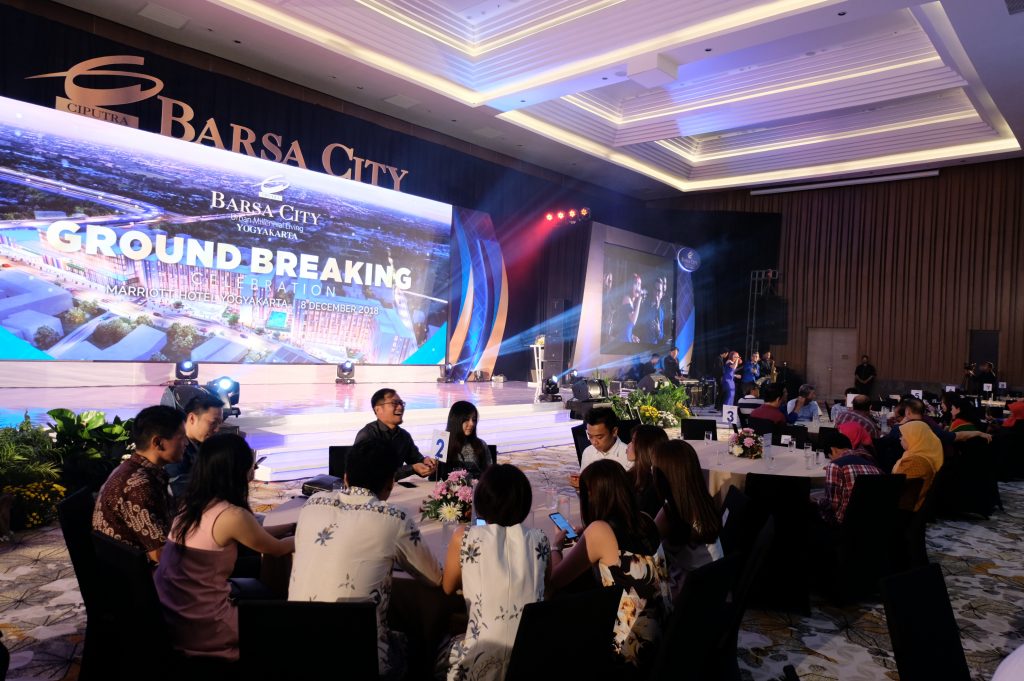 Saat gate ballroom dibuka, para tamu diarahkan melewati sebuah lorong yang menyuguhkan tampilan show unit dari Barsa City Yogyakarta. Acara disemarakkan dengan dancer kekinian, pemberian apresiasi untuk para agen properti, dan undian lucky chair yang turut menghebohkan ruangan ballroom saat itu. Penyanyi “Andien” menjadi bintang tamu yang paling ditunggu-tunggu dalam acara Ground Breaking Celebration Barsa City Sabtu, 8 Desember 2018.