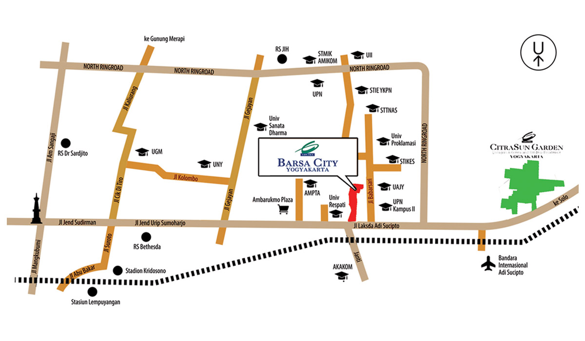Barsa City terletak di bagian utara kota Yogyakarta yang mana lokasi tersebut sangatlah strategis dengan menawarkan banyak kemudahan akses.